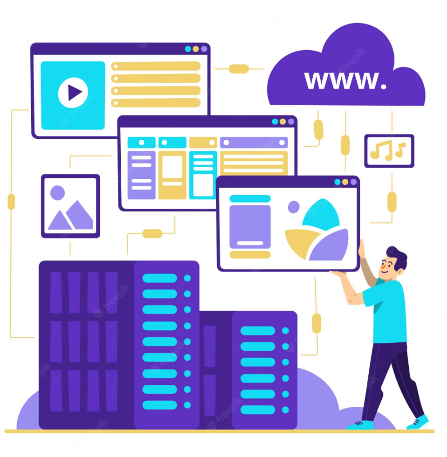 - Hosting: It is a service that allows you to host or store website files on a server so that they can be accessed by Internet users. It's like the house where the company is physically located.